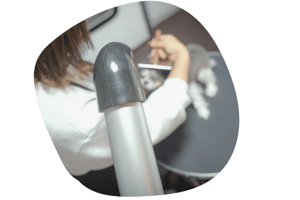 そのためarcでは、トリミングのストレスを軽減するために、優しく乾かせるスタンドドライヤーを使用することもあります。